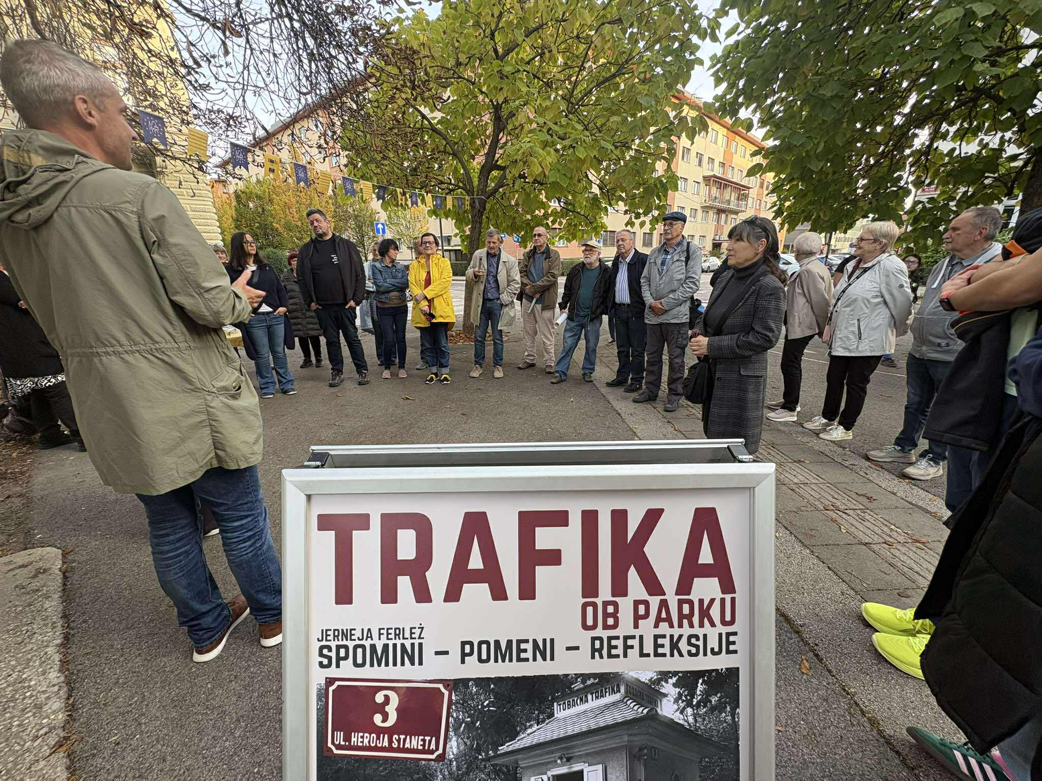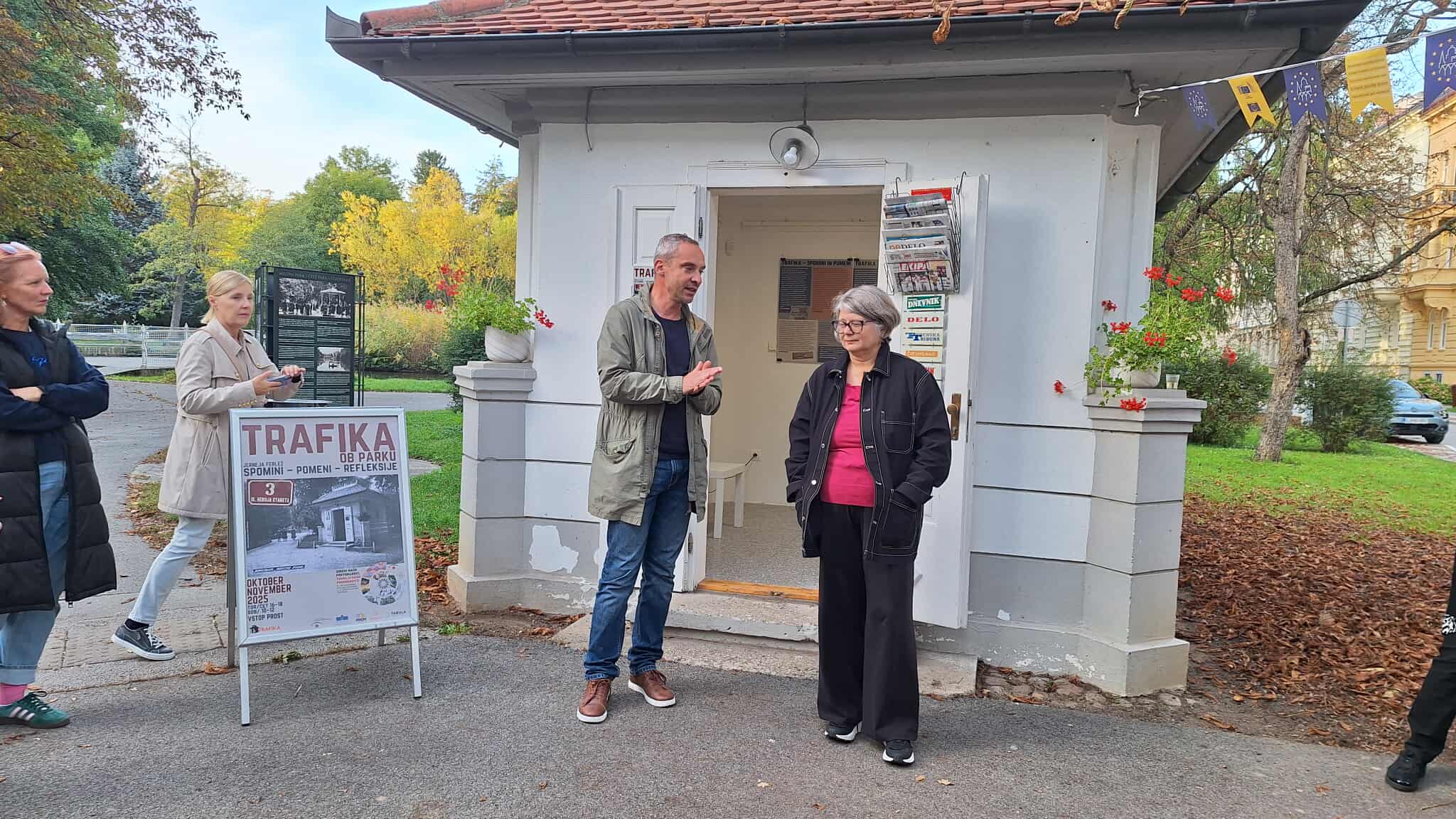 Ko so ob koncu 20-ih let 20. st. postavili trafiko ob parku, je gotovo niso umestili brez razmisleka – časopisi pred vstopom v park, blizu kavarne, drobne tiskovine blizu upravnega poslopja. Kot trafika je zgradba delovala še dolgo po drugi svetovni vojni, nato pa so se tu zvrstile zelo različne dejavnosti. Nekaj časa je samevala. Zgradbe so tudi sidrišča osebnih in kolektivnih spominov in prav ti so osrednji del tokratne razstave. Čeprav so raznoliki, imajo veliko stičnih točk. Sporočajo, da imajo prostori za ljudi različne pomene – v nekaterih okoliščinah se nanje navežejo in jih čutijo kot svoje, v drugih jih komaj opazijo. Največ spominov nastaja v obdobjih, ko so javnosti dostopni v najširšem pomenu besede, najmanj pa takrat, ko so nefunkcionalni. Razstavo TRAFIKA OB PARKU: Spomini – pomeni – refleksije je v sodelovanju z društvom Trafika pripravila dr. Jerneja Ferlež